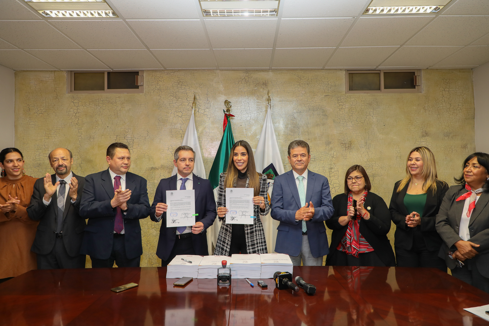 Acompañada por las diputadas Rosa Elena Trujillo Llanes, Alejandra López Noriega, Brenda Lizeth Córdova Búzani, Alma Manuela Higuera Esquer e Ivana Celeste Taddei Arriola, presidenta de la Comisión de Hacienda, también los diputados Fermín Trujillo Fuentes, Héctor Raúl Castelo Montaño y Ernesto Roger Munro Jr, la titular del Poder Legislativo dio de esta forma cumplimiento a una de las obligaciones constitucionales de esta Soberanía, establecida en los artículos 42 y 64, fracción XXII de la máxima norma jurídica del Estado.